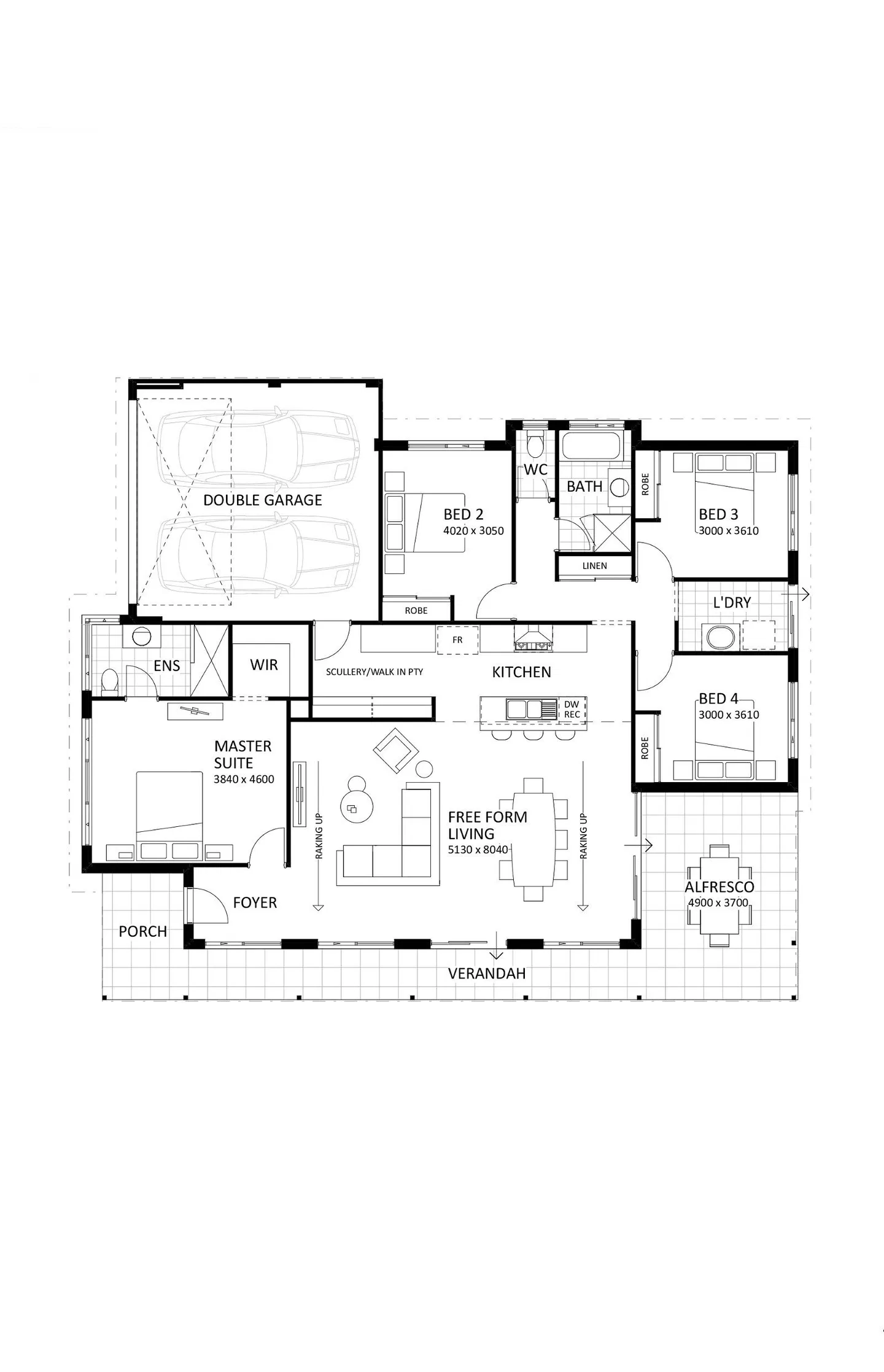 2 The verandah to the front and the generous alfresco at the side, give you the perfect areas to take in the views of your natural surroundings. With raked ceilings stretching from the verandah to the free-form living areas, this home It’s a testament to the art of gracious living, where every corner is designed to reflect the essence of rural luxury.